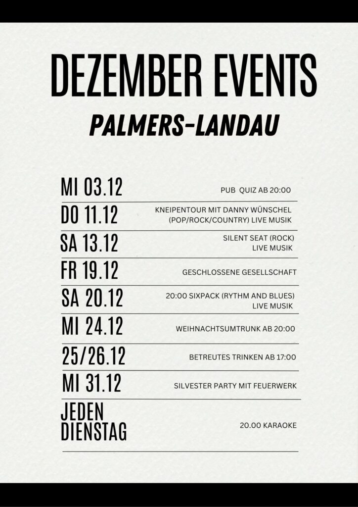 Dank neuer Küche und frischer Ausstattung erwartet dich jetzt auch eine überarbeitete Speisekarte mit leckeren Snacks und besonderen Kleinigkeiten. Die neue Atmosphäre – offen, herzlich und mit dem richtigen Sound – macht das Palmers zum idealen Ort für entspannte Abende, gute Gespräche und unvergessliche Momente im Schillerpark.